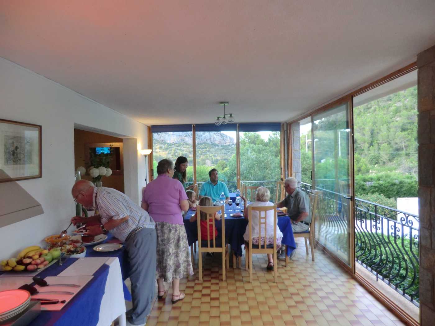 Everybody arrived on the Saturday afternoon, and a great time was had catching up on family news, and generally spending some time in each other’s company. It had been a long time since they had seen each other, so the opportunity to meet up in a relaxed atmosphere was very much appreciated by everyone. The twins loved playing with our cats and dogs and swimming in the pool as well, and the weather was perfect for a great day in the garden. Evening meal was served at half past eight on our terrace overlooking the garden and pool, and provided further opportunities for conversation.