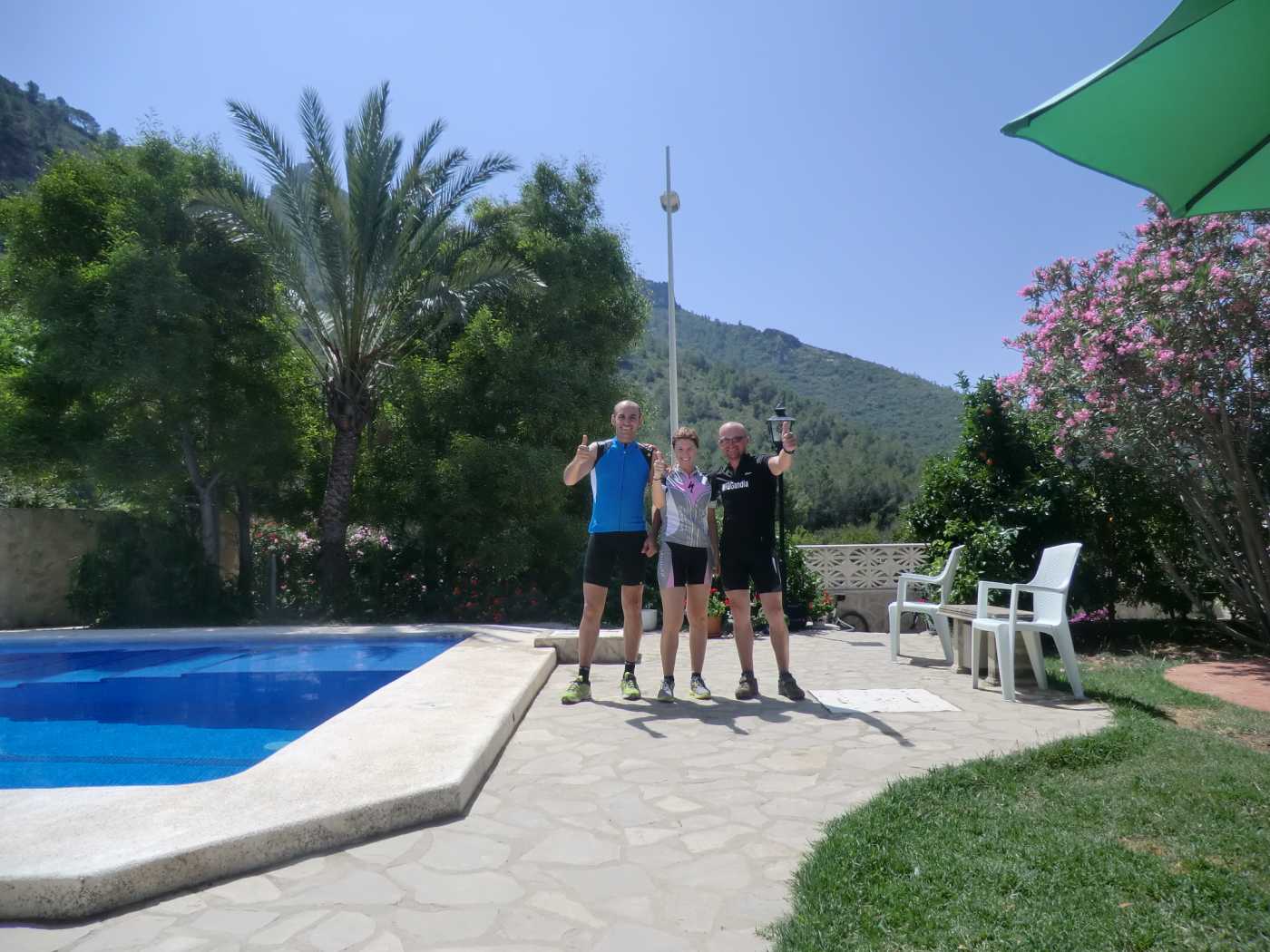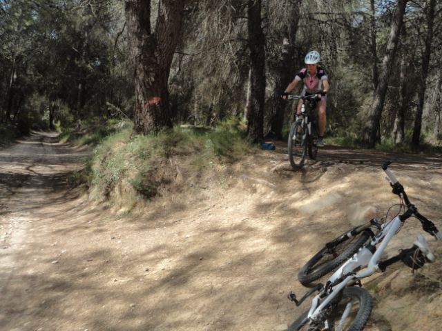 Sunday was a less strenuous day, however, as their plan was only to bike during the morning in our valley here, taking in the monastery of Sant Jeroni, as well as practising considerable technical skills in the safe environment of a wooded area nearby. Although they would of course have been welcome to spend the rest of the day here enjoying the gardens and pool, they reluctantly had to leave in the early afternoon – Raul heading to Madrid for work reasons and Eva driving back to Catalunya. However, they had thoroughly enjoyed themselves here with us and very much want to come back for more of the same. We look forward to welcoming them back to us here at our casa rural when they can take advantage of one of our all-inclusive mountain biking packages again. Maybe they will be able to stay with us for longer the next time and see even more of what this beautiful part of the Costa Blanca has to offer the outdoor enthusiast.