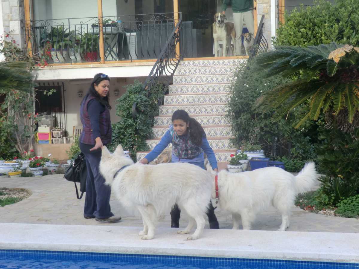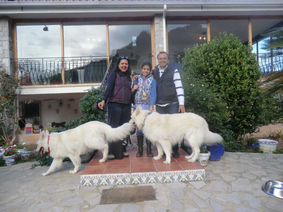 We recently welcomed the Subrahmanian family to Villa Florencia, as they wanted to stay overnight on their way to a holiday villa they had rented near Malaga and they had been looking for accommodation that would offer them vegetarian cuisine. Originally from Mumbai, Chitra and Ram moved to Switzerland about fifteen years ago, and their daughter was then born in Geneva five years later. They love travelling around Europe during their holidays, but had never explored Spain until now. They stayed with us because they had been looking not only for a guest house conveniently located between the north and south of the country, but also one that was happy to cater for vegetarian preferences, and also welcomed pets as well. They were travelling with their two beautiful, white Swiss Shepherd dogs, so our apartment suited them perfectly with its spacious bedrooms and living area.