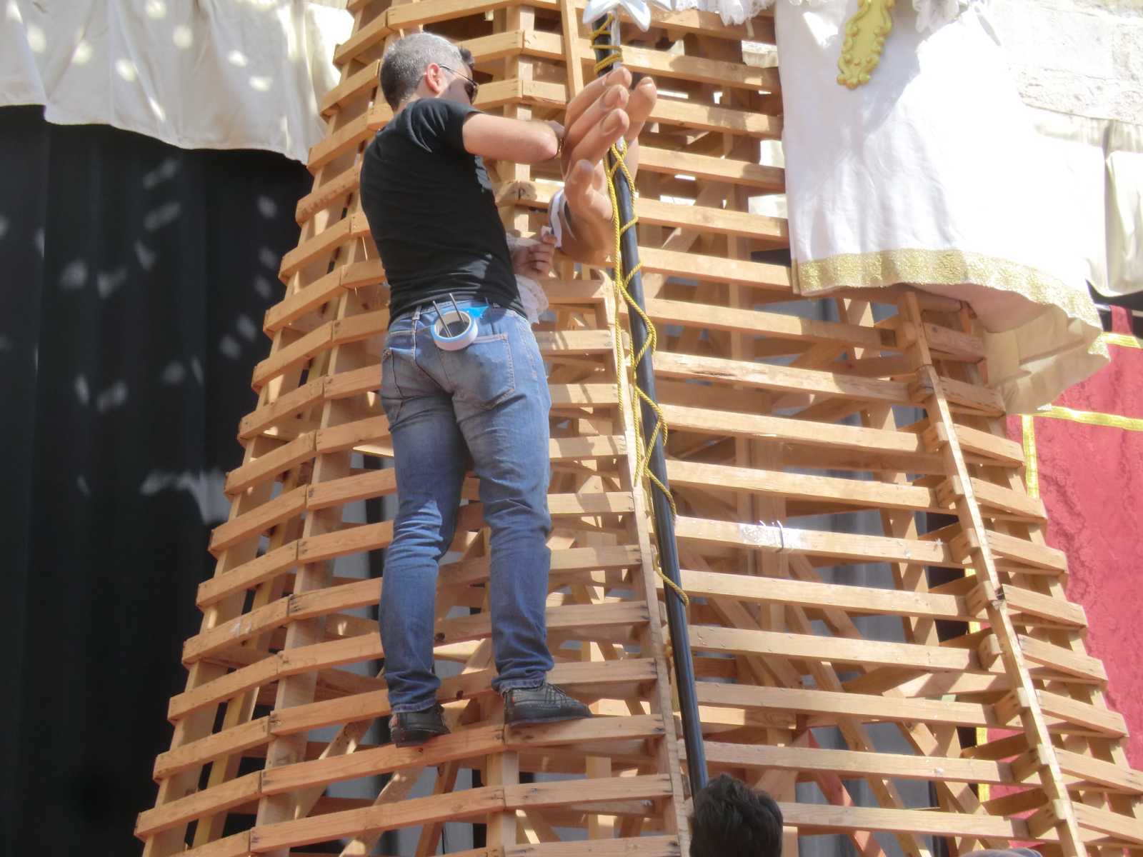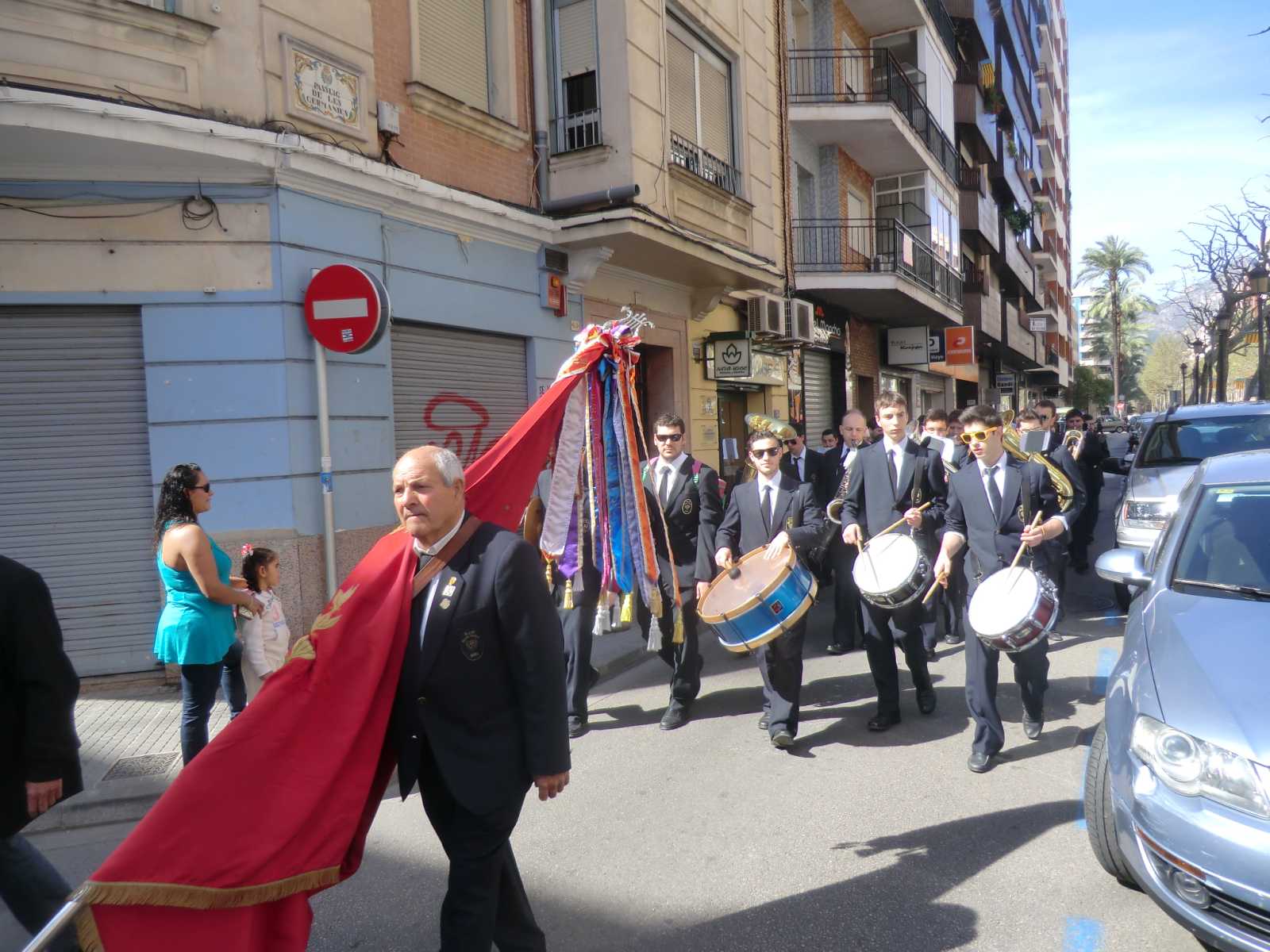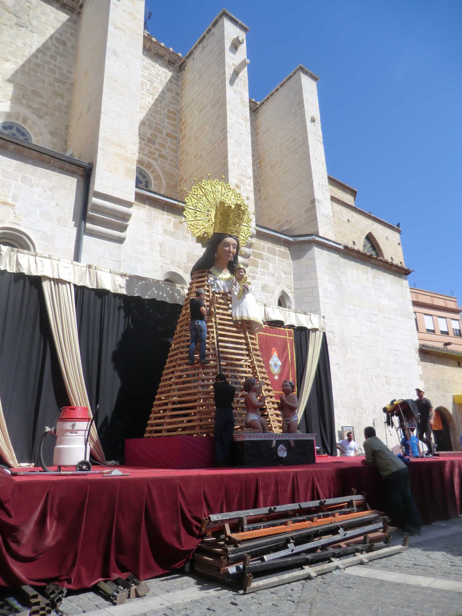 Every day they went to a different town or village and really did their preparation when it came to knowing what parade was going to take place, where and when! In the past they had stayed near Xativa and on one day of each trip would take the train to Valencia city to see the magnificent effigies that are built there. This trip, however, they were so impressed with the offerings on display in Gandia that they decided to forgo their Valencia visit (and all the crowds of people there too!) and spend their time in the smaller towns nearby, with their main focus being Gandia. The “Mascleta” (or fireworks display) was a must for them of course, and this takes place each day at 2.00pm in front of Gandia’s railway station. In line with most fireworks in Spain, it is much more about the noise than a visible display in the sky – and a huge noise it is indeed! Sandy and David only went to the “Mascleta” a couple of times, but loved the whole general atmosphere in Gandia. They involved themselves in watching parades and bands, and especially enjoyed the day of the main parade in Gandia, which culminates in the presentation of flowers to the statue of Mary at the main church.