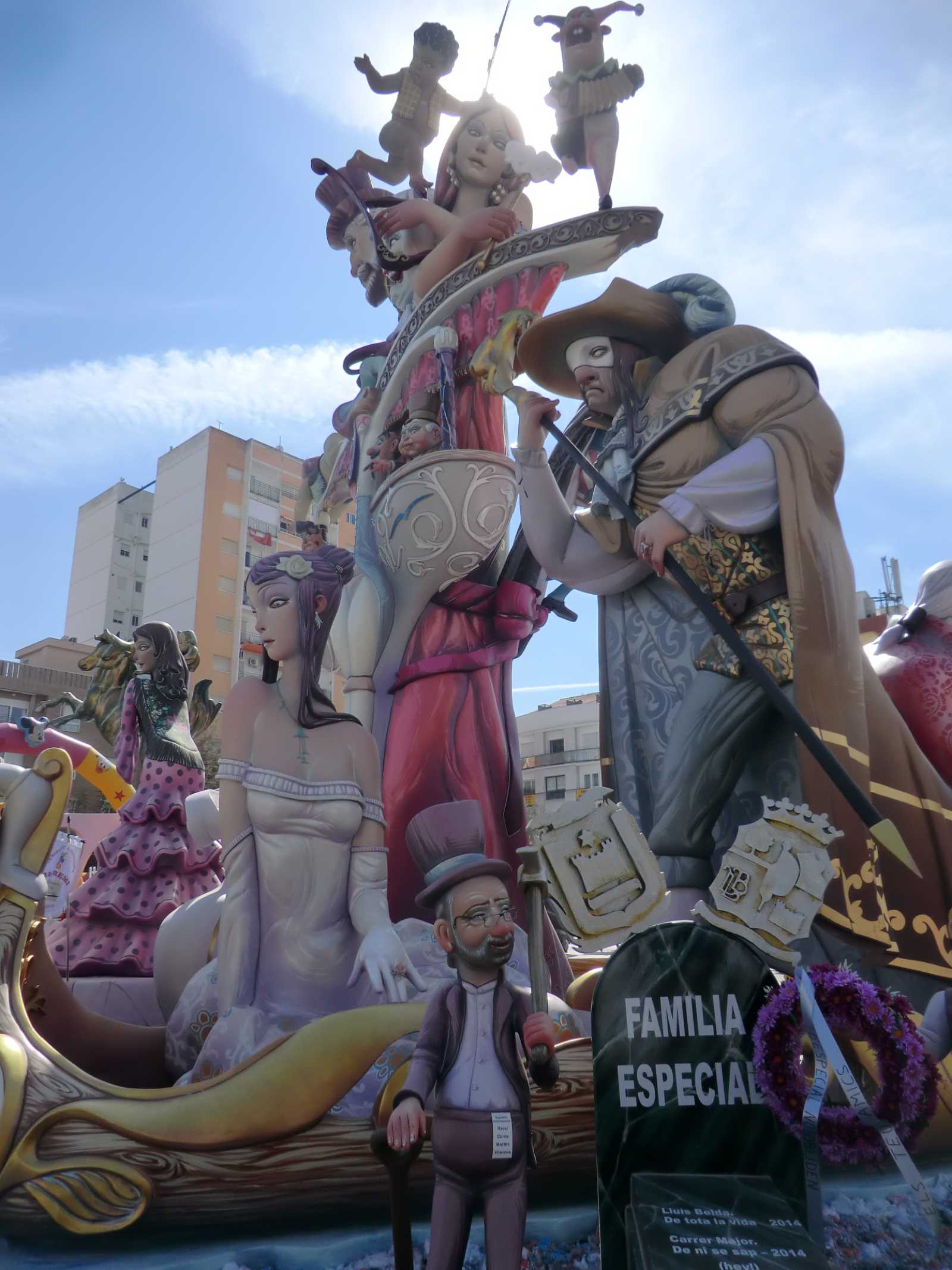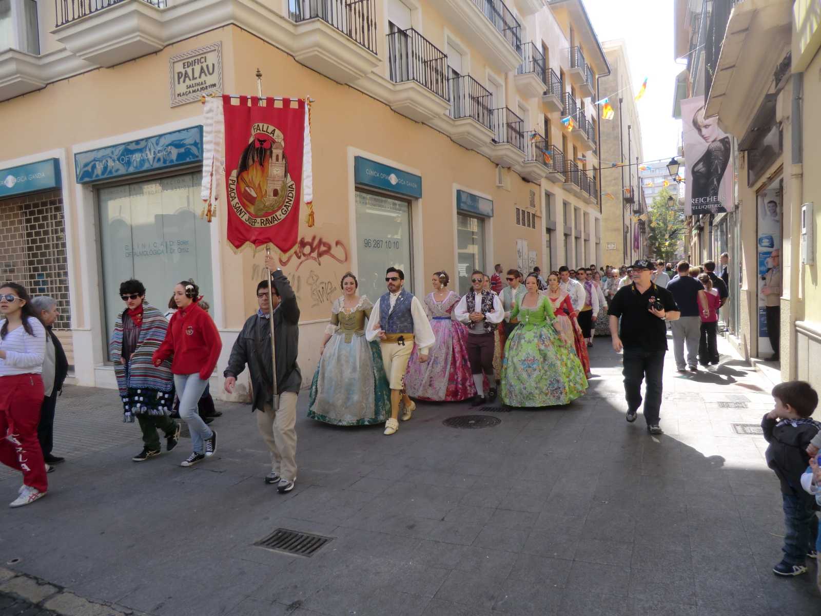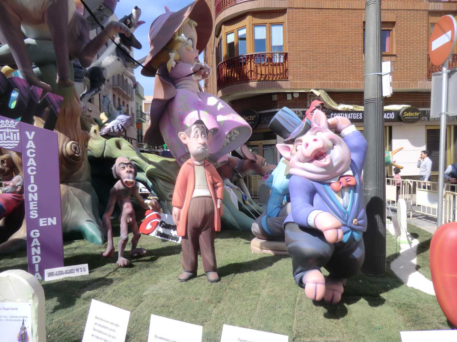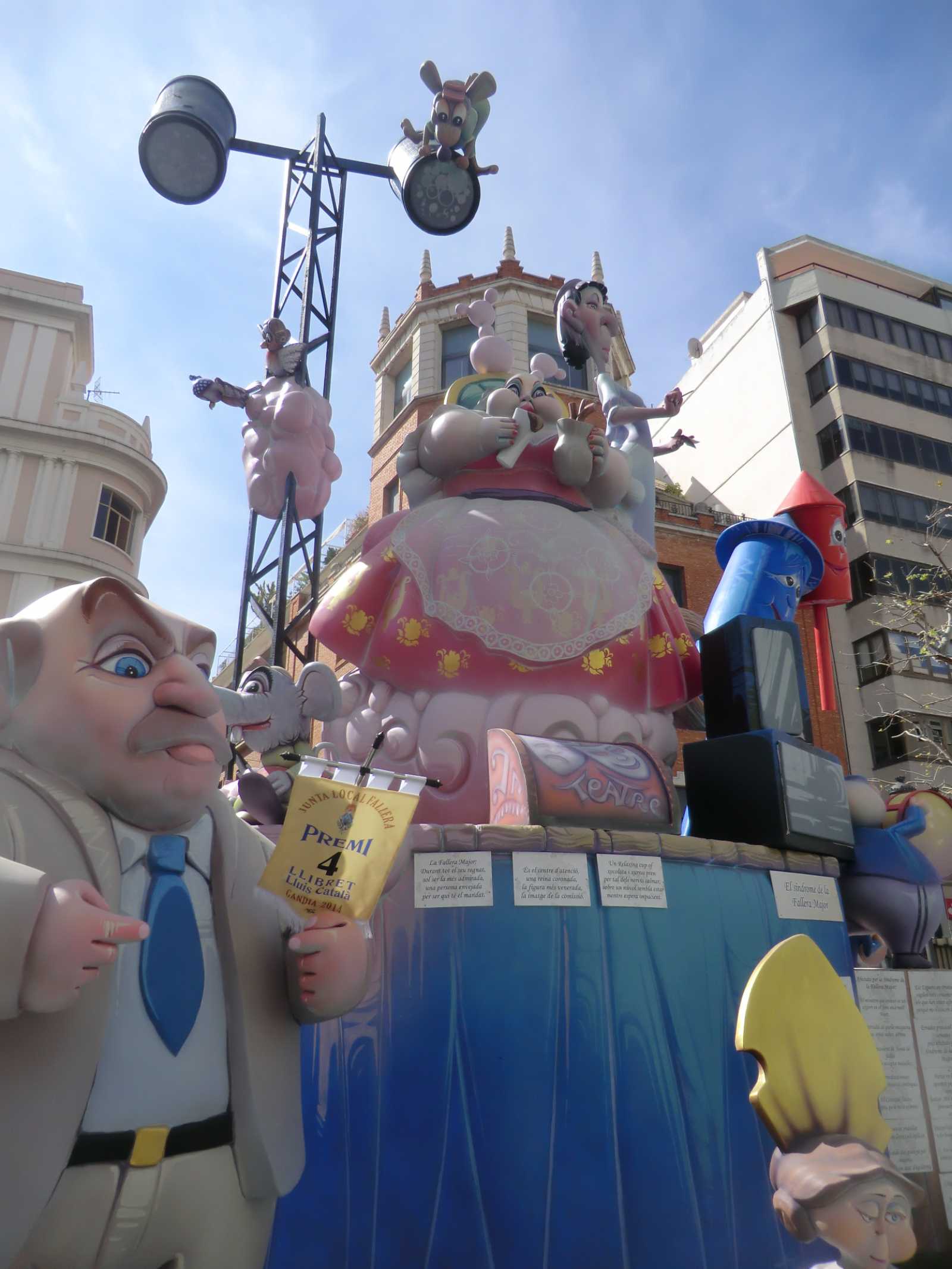 Quite a few months ago we received a booking from Sandy and David who wanted to stay in our self-catering apartment for nearly a fortnight, to coincide with the local fiesta of Gandia Las Fallas 2014. Las Fallas is the famous Valencian fiesta which sees enormous satirical effigies constructed in each town (or in each area of larger towns). These are then judged on their merits and finally burned to the ground on the night of March 19th – St Joseph’s Day, the patron saint of carpenters. In the run-up to March 19th there are daily parades with marching bands and local ladies and young girls bedecked in the most elaborate of traditional dress.