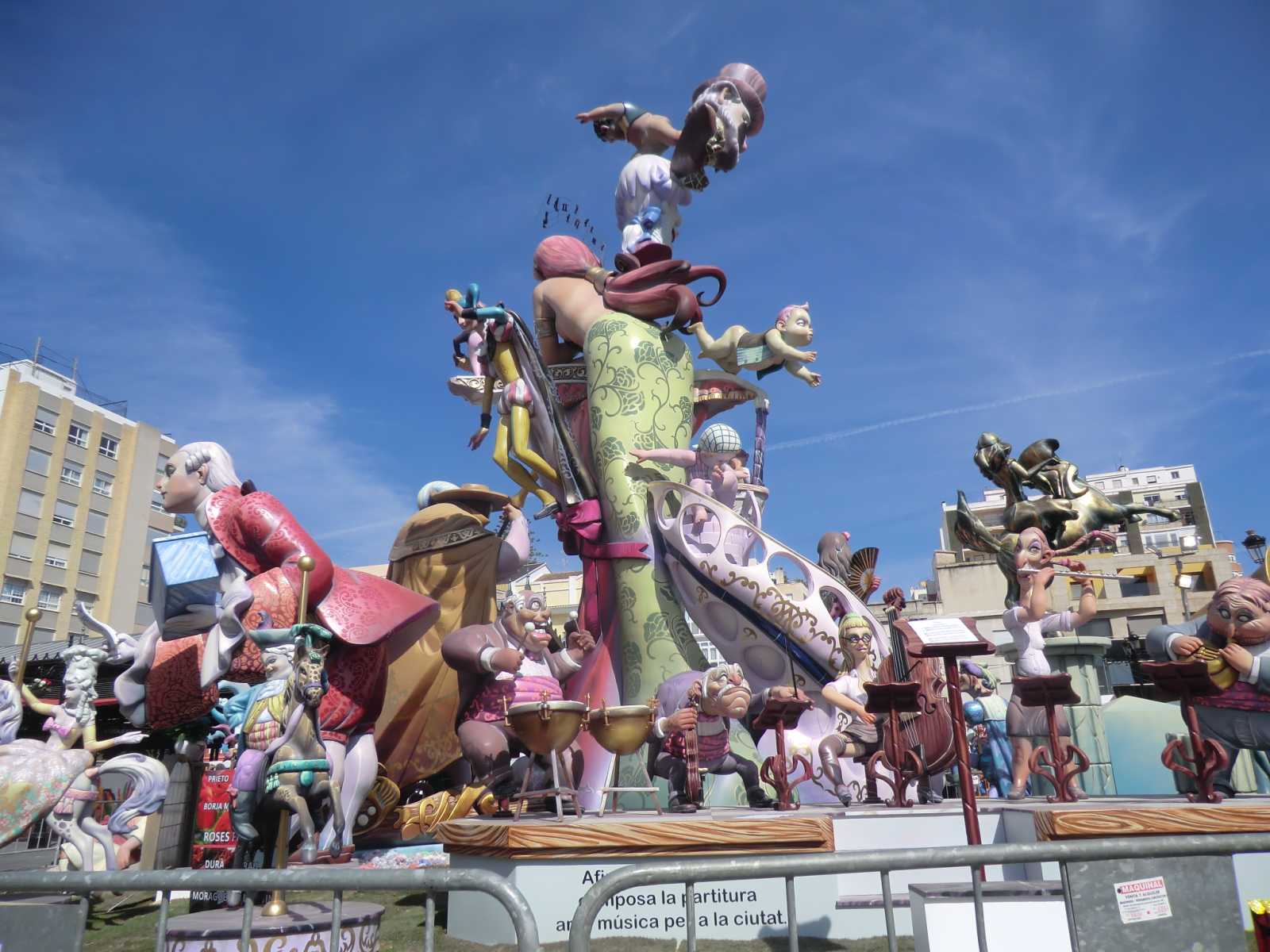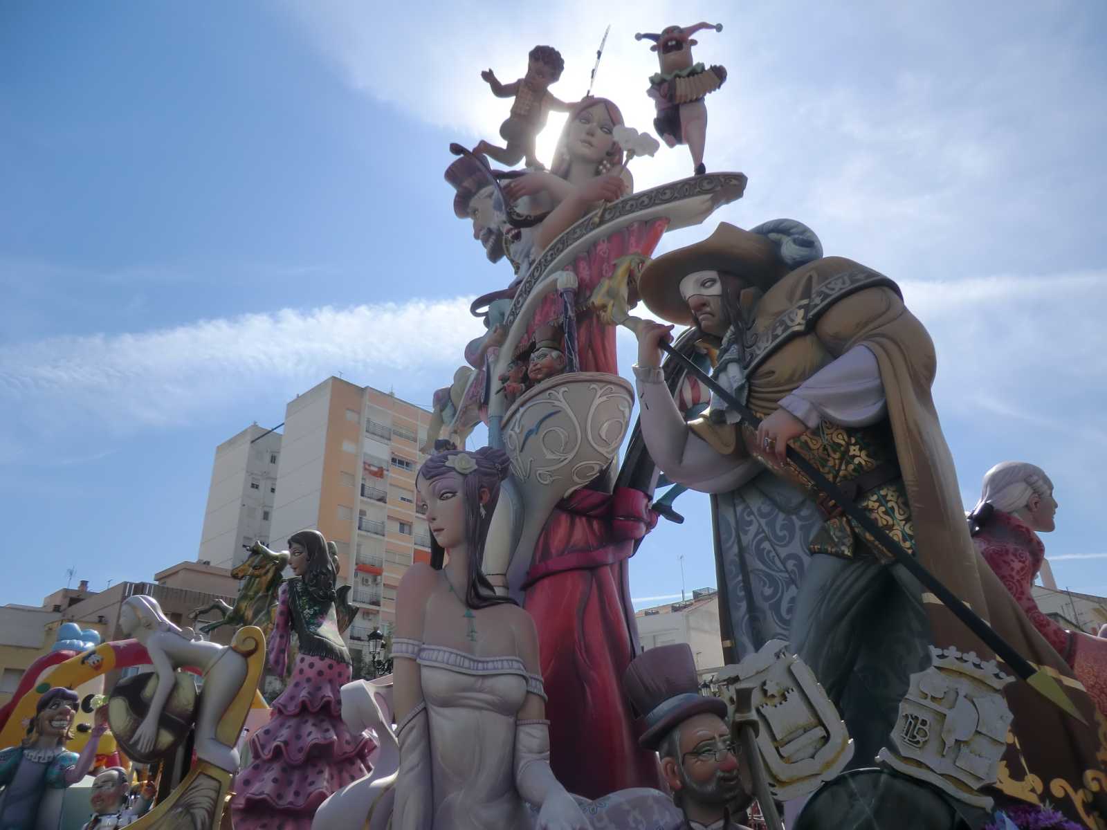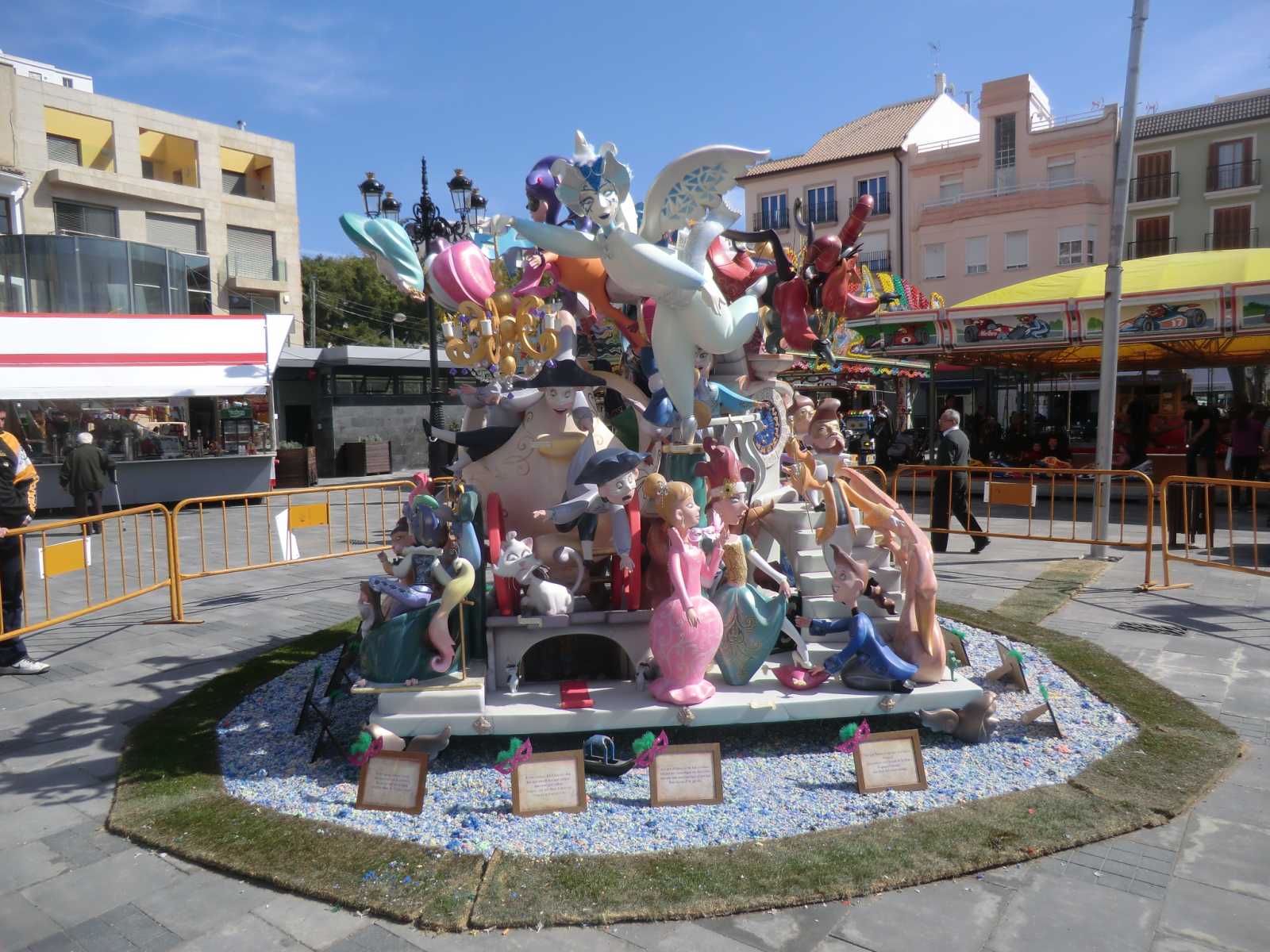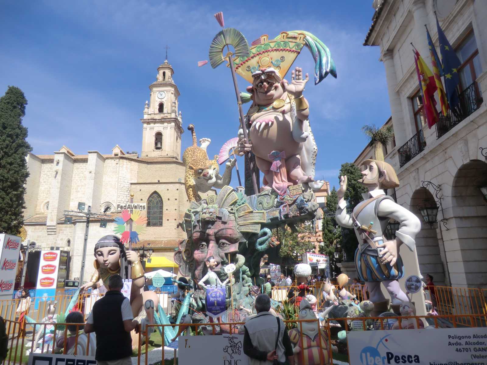 Quite a few months ago we received a booking from Sandy and David who wanted to stay in our self-catering apartment for nearly a fortnight, to coincide with the local fiesta of Gandia Las Fallas 2014. Las Fallas is the famous Valencian fiesta which sees enormous satirical effigies constructed in each town (or in each area of larger towns). These are then judged on their merits and finally burned to the ground on the night of March 19th – St Joseph’s Day, the patron saint of carpenters. In the run-up to March 19th there are daily parades with marching bands and local ladies and young girls bedecked in the most elaborate of traditional dress.