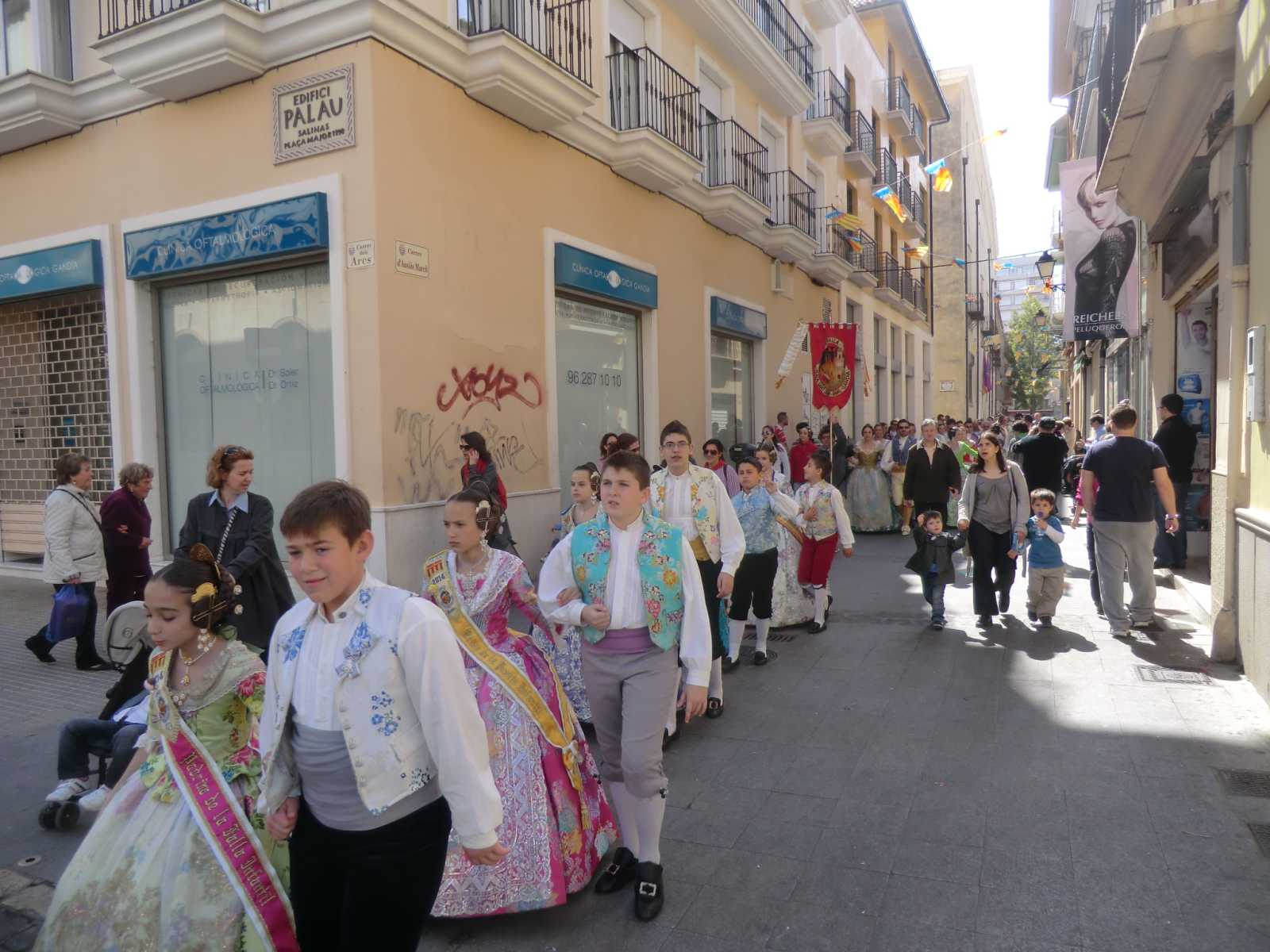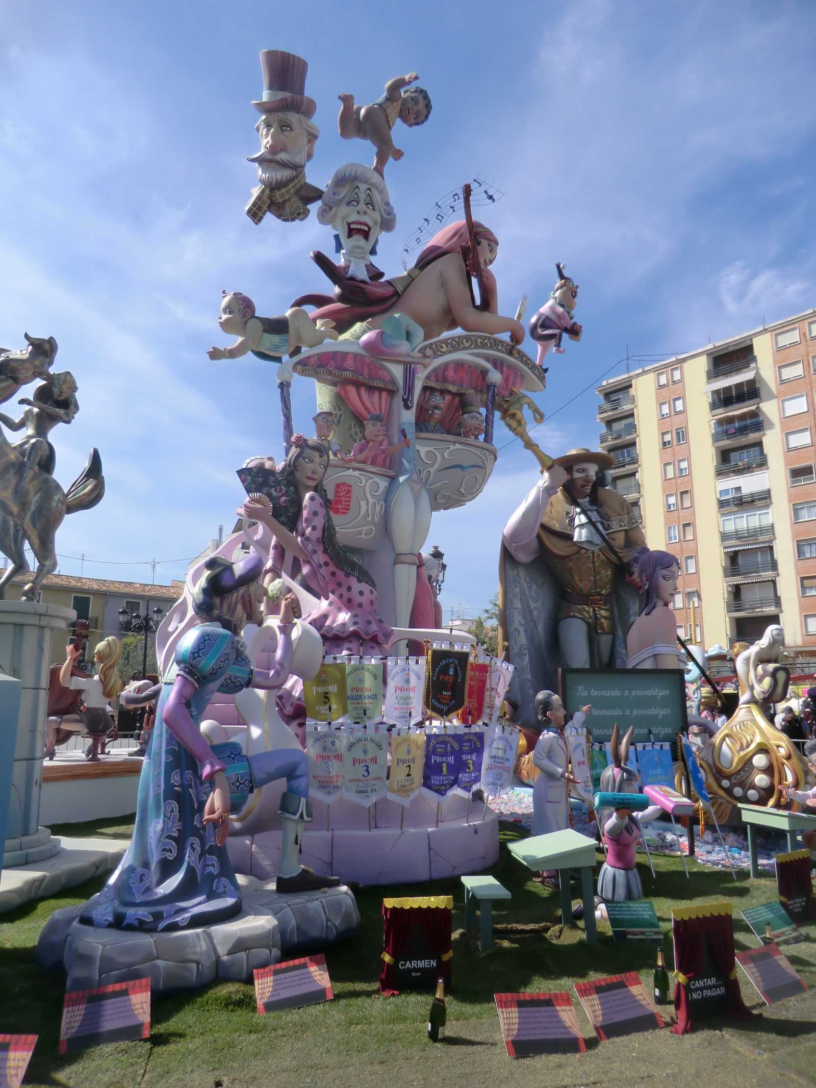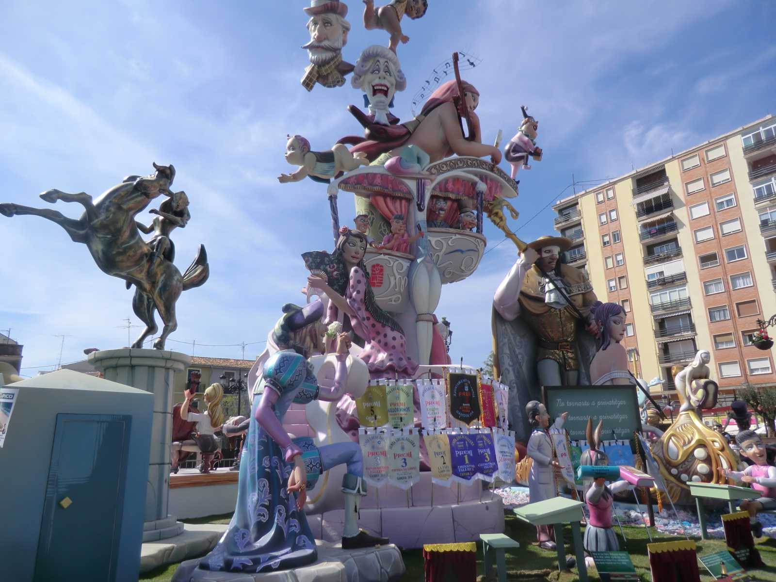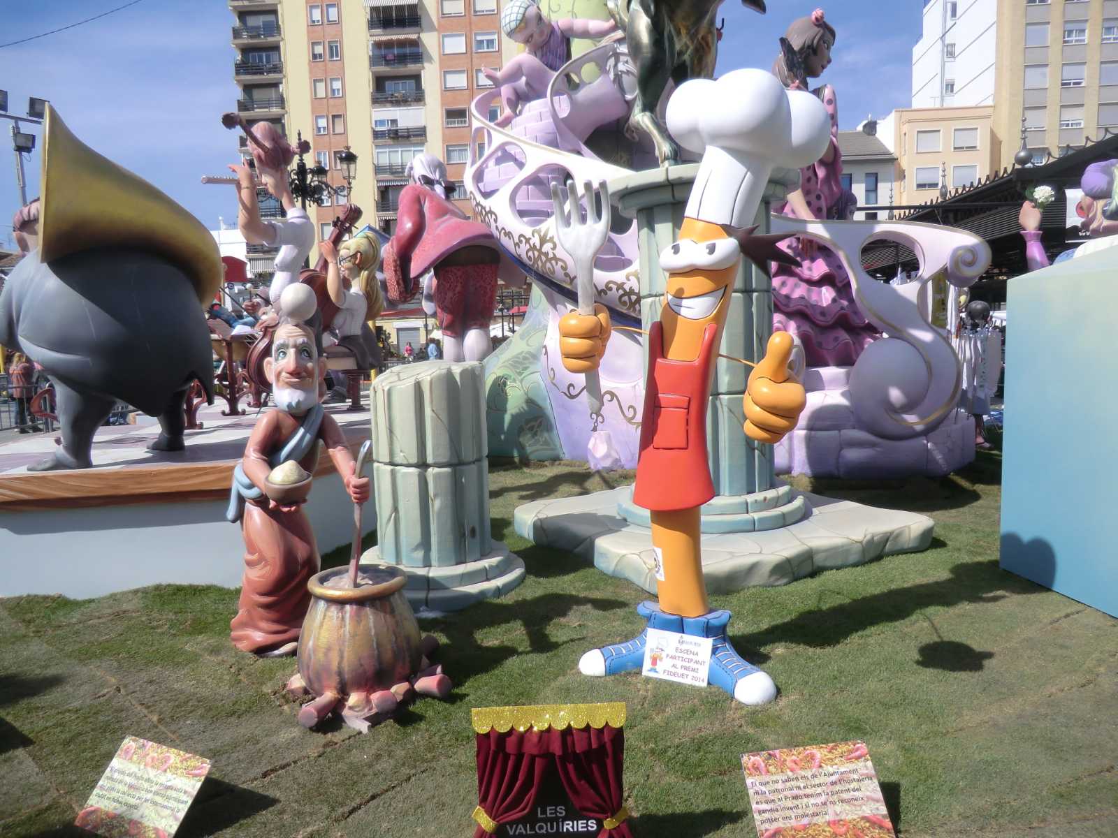 Quite a few months ago we received a booking from Sandy and David who wanted to stay in our self-catering apartment for nearly a fortnight, to coincide with the local fiesta of Gandia Las Fallas 2014. Las Fallas is the famous Valencian fiesta which sees enormous satirical effigies constructed in each town (or in each area of larger towns). These are then judged on their merits and finally burned to the ground on the night of March 19th – St Joseph’s Day, the patron saint of carpenters. In the run-up to March 19th there are daily parades with marching bands and local ladies and young girls bedecked in the most elaborate of traditional dress.